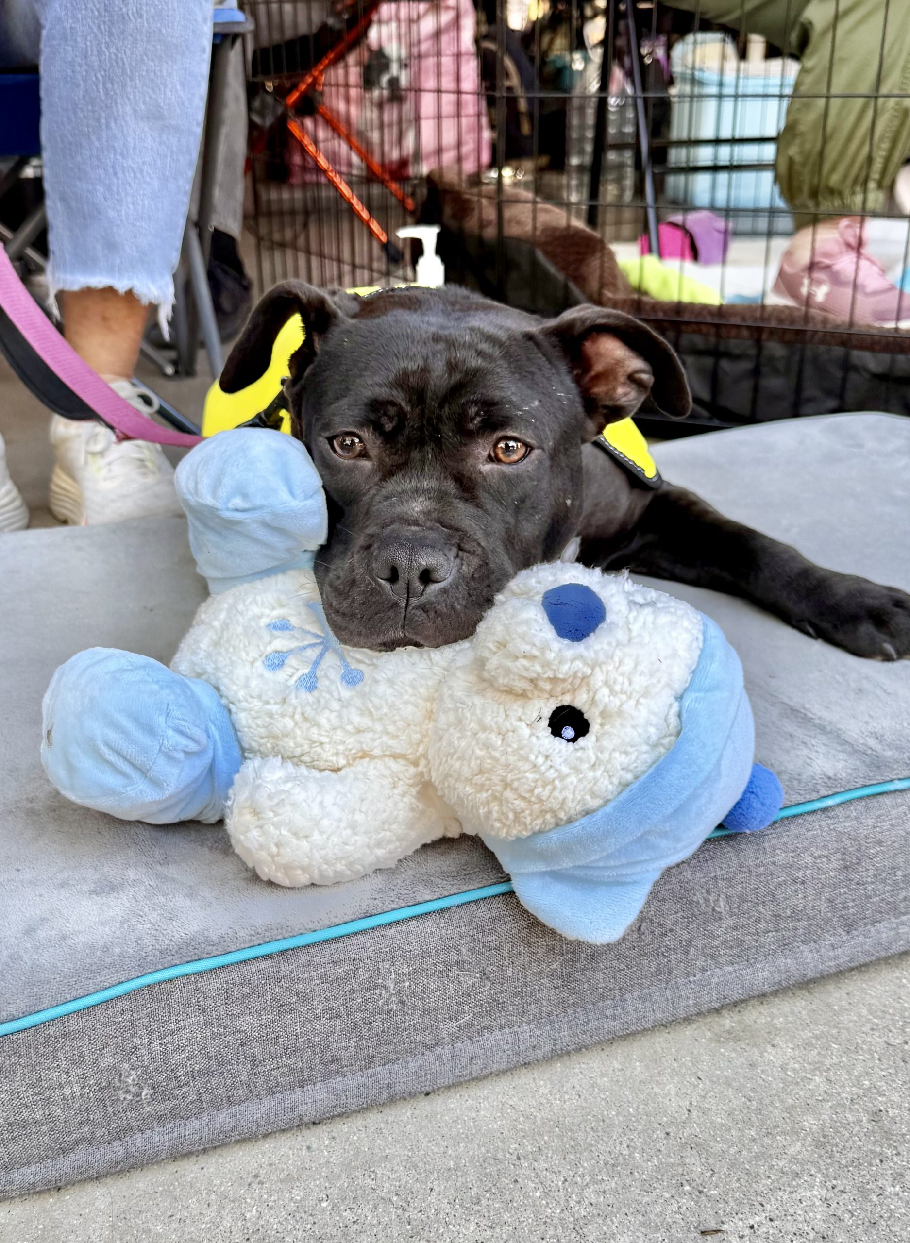 Meet Ember, she has a heart as warm as her name and is looking for a family to call her own. We absolutely adore this wonderful girl. She truly is a gentle soul who will warm your heart. She reminds us of a baby hippo :-) cute, cute, and cuuuute! (And can be lazy lol) Not much of a toy girl, more of a treats girl lol This girl loves her treats and with her super sweet eyes, it takes self control to not keep giving them to her ;-) Although she loves a cozy bed and chilling out, she can be playful with other dogs. She currently has some furry friends in her foster home and she likes hanging out with them. She is 2 years old and weighs 50 pounds. She is crate trained, although she doesn’t need it. She is microchipped, has received all of her vaccines, and she will be spayed in a few weeks, which the rescue will take care of.