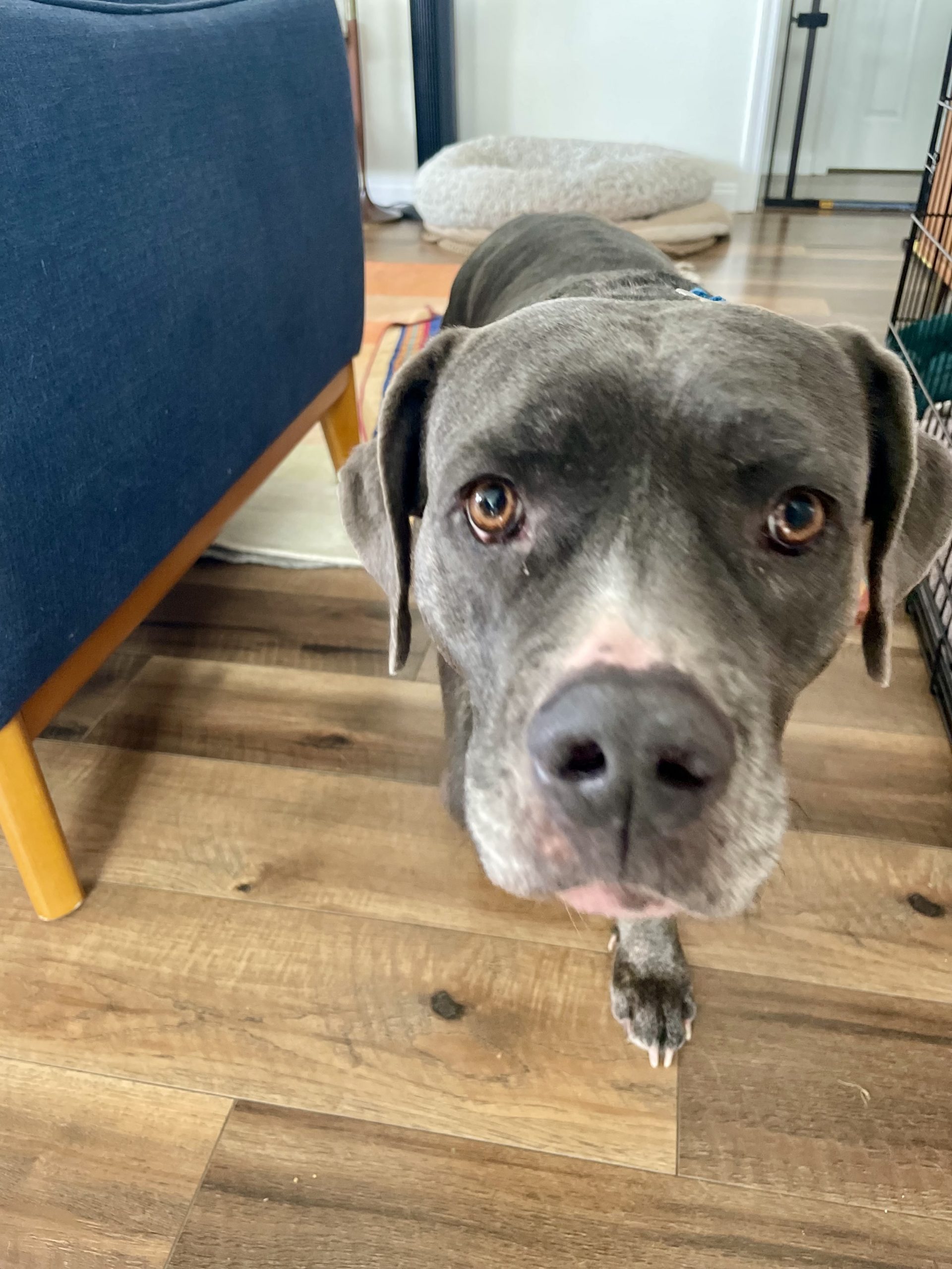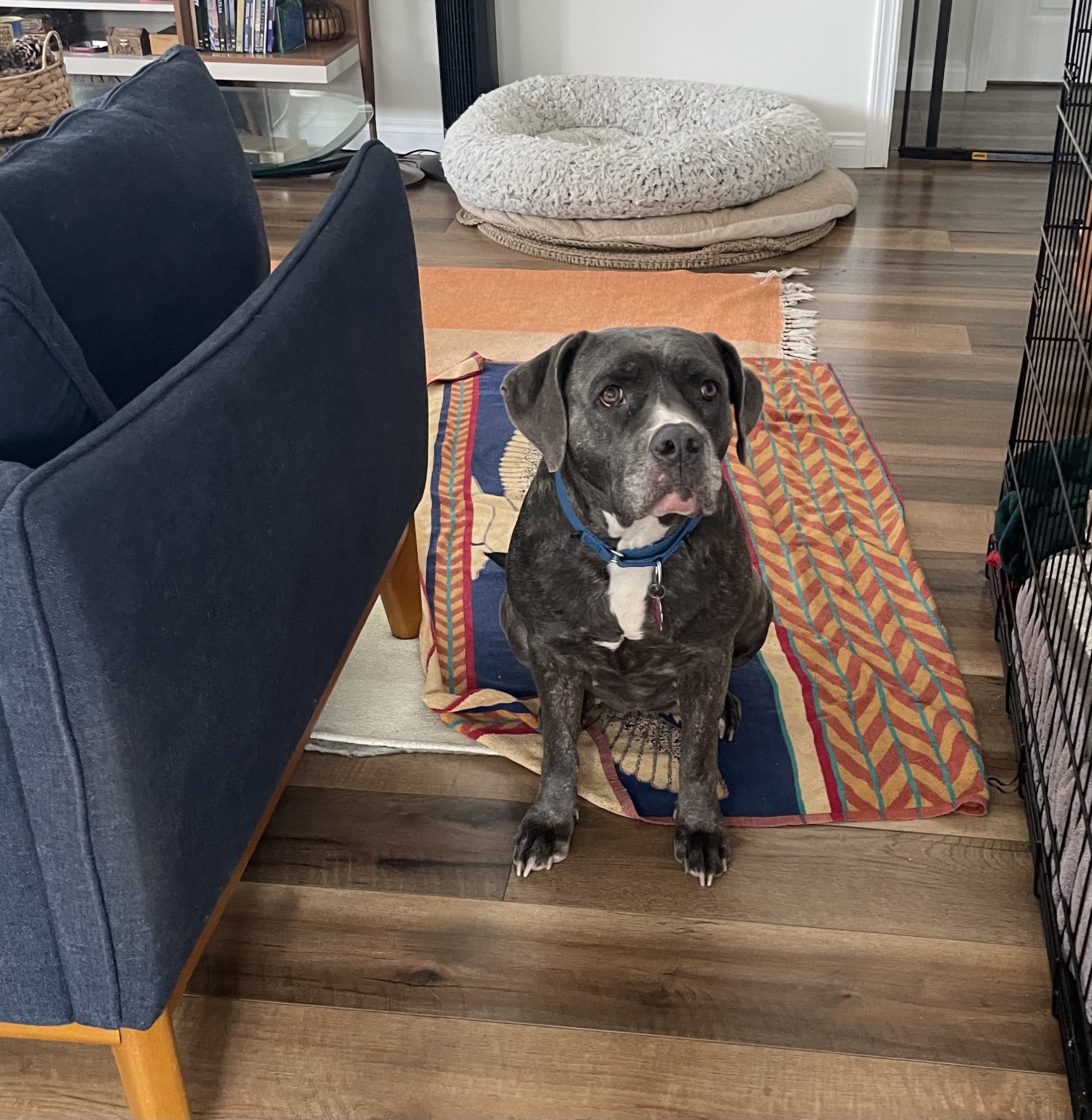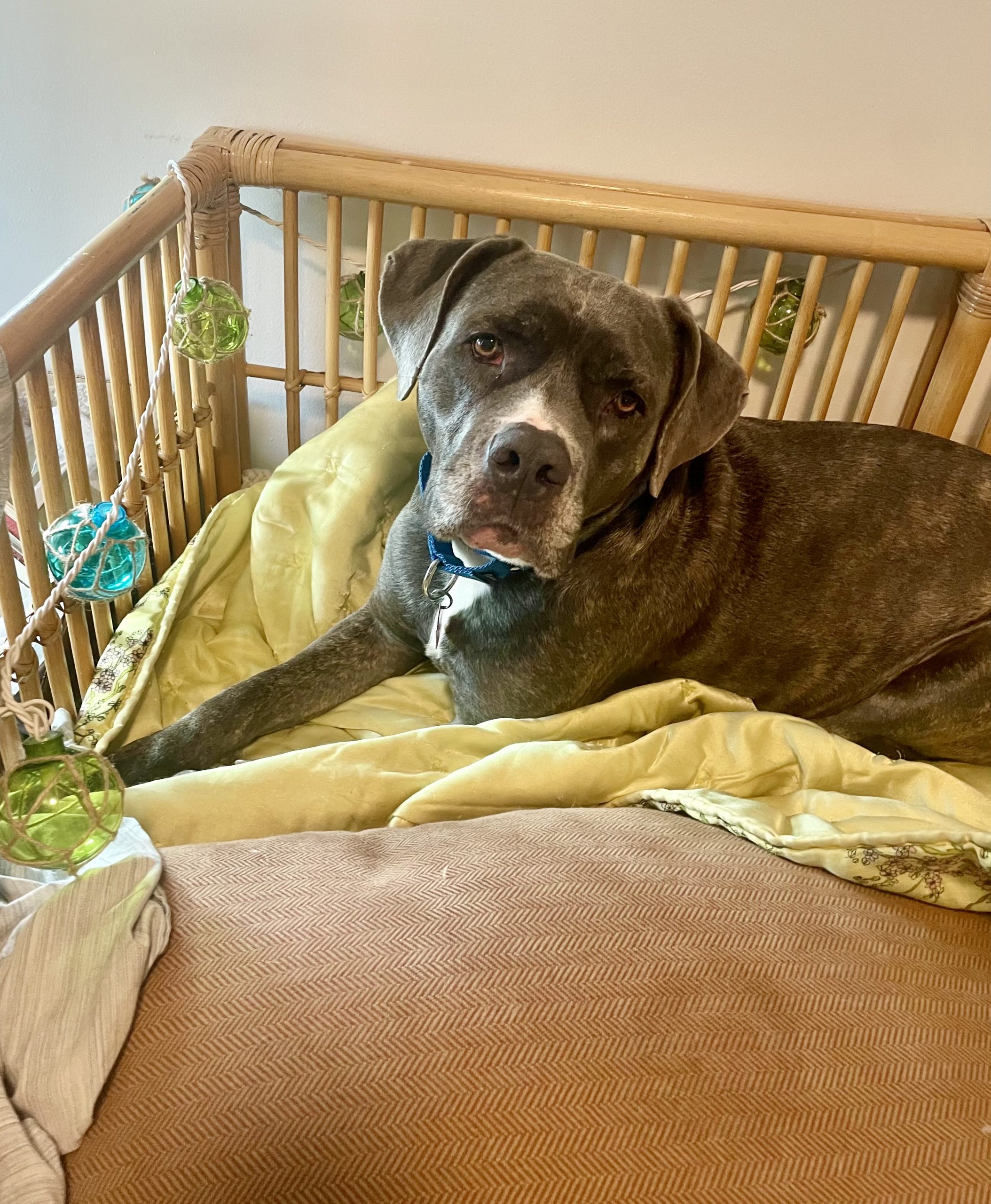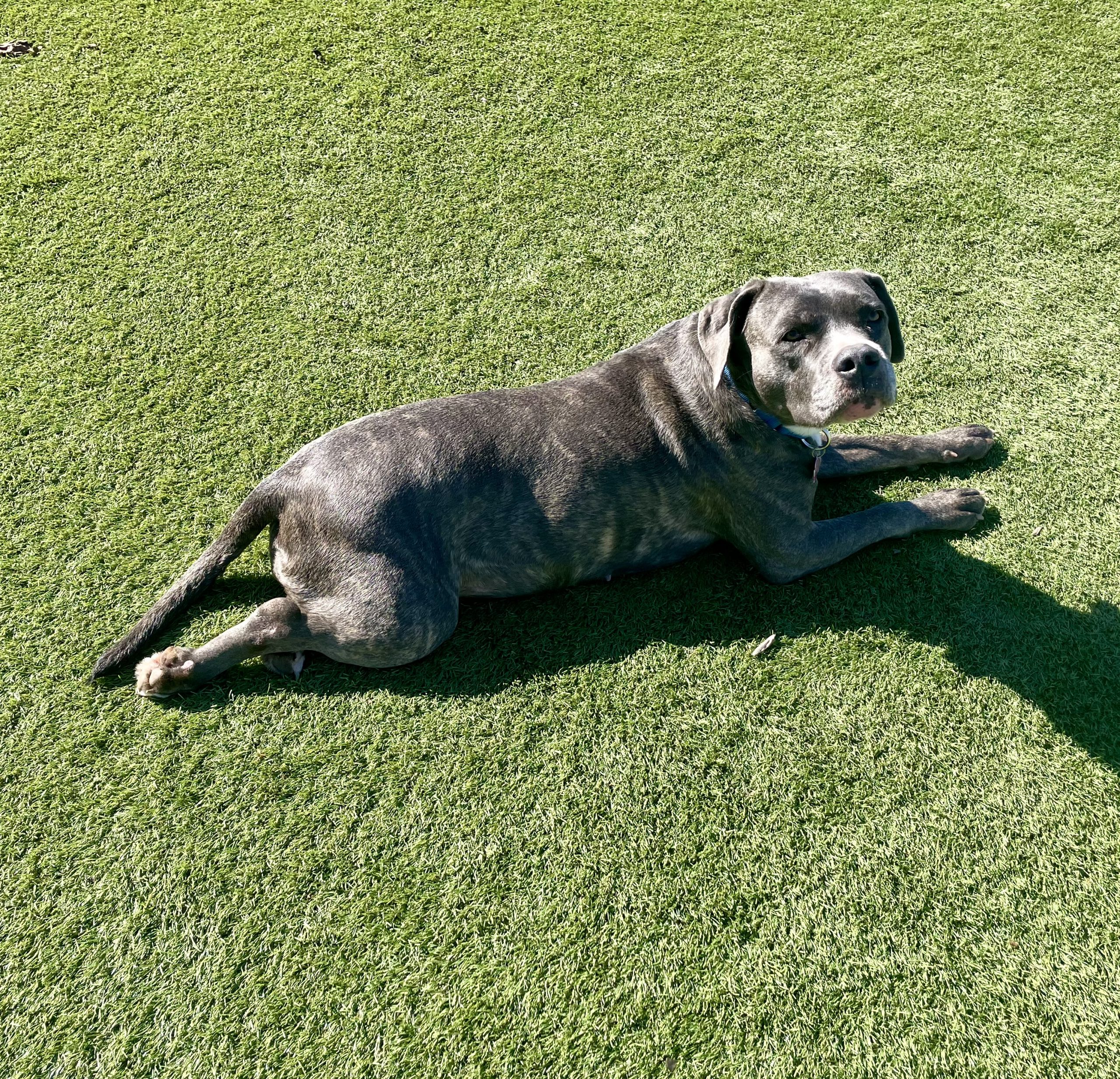 At 4 years old and 63 pounds, Lilly is the perfect medium sized, low energy companion. Chill and calm is her vibe. She’s the kind of girl who enjoys the simple things. A peaceful stroll around the neighborhood, a sunny spot in the yard to sunbathe (she’s a big fan of meditating and listening to the birds), car rides, and most of all cuddling up close to her people. She has good doggy manners; gets along wonderfully with her two foster brothers, is potty trained, and while she doesn’t mind her crate, she’s trustworthy enough to not need it.