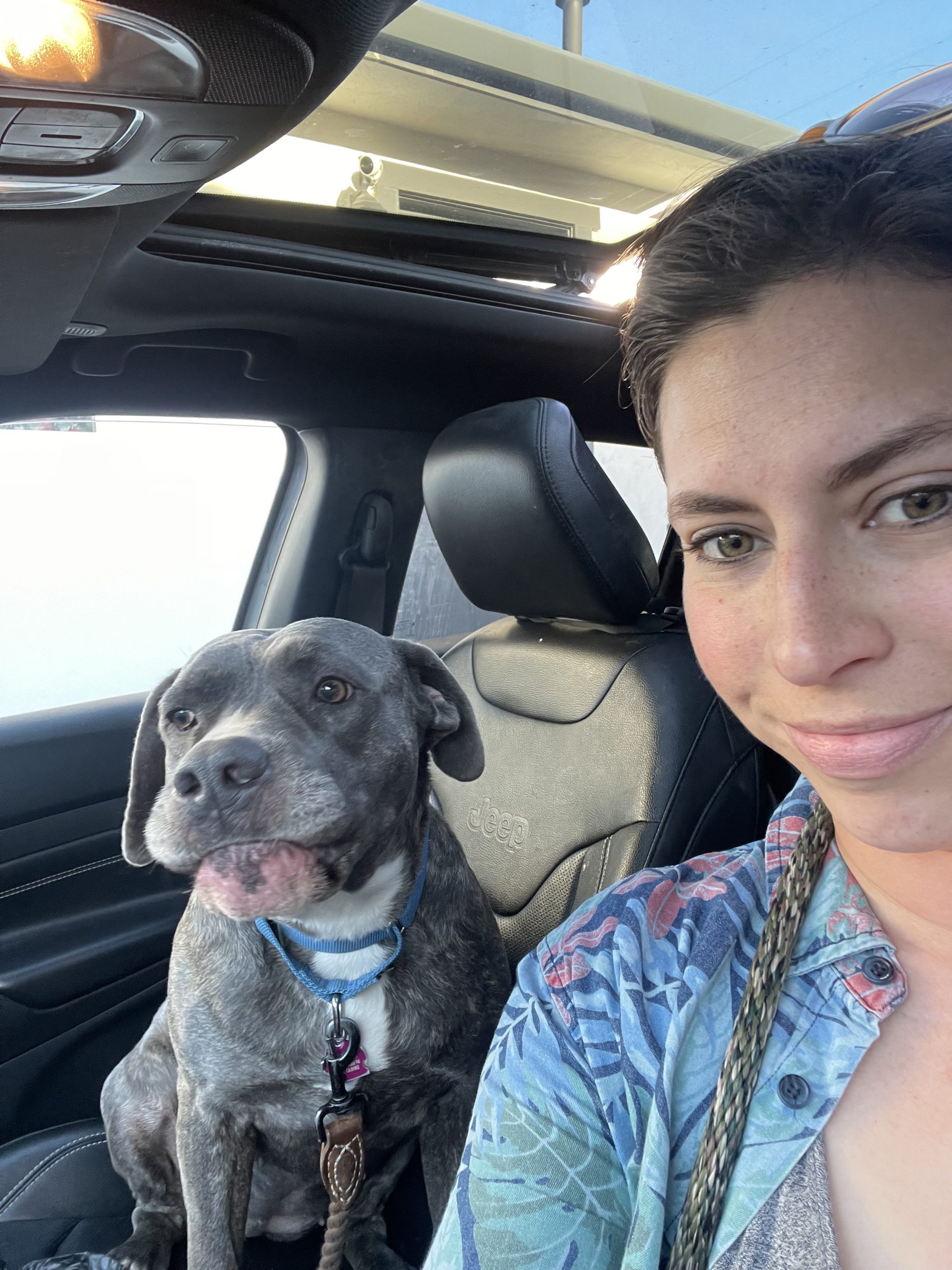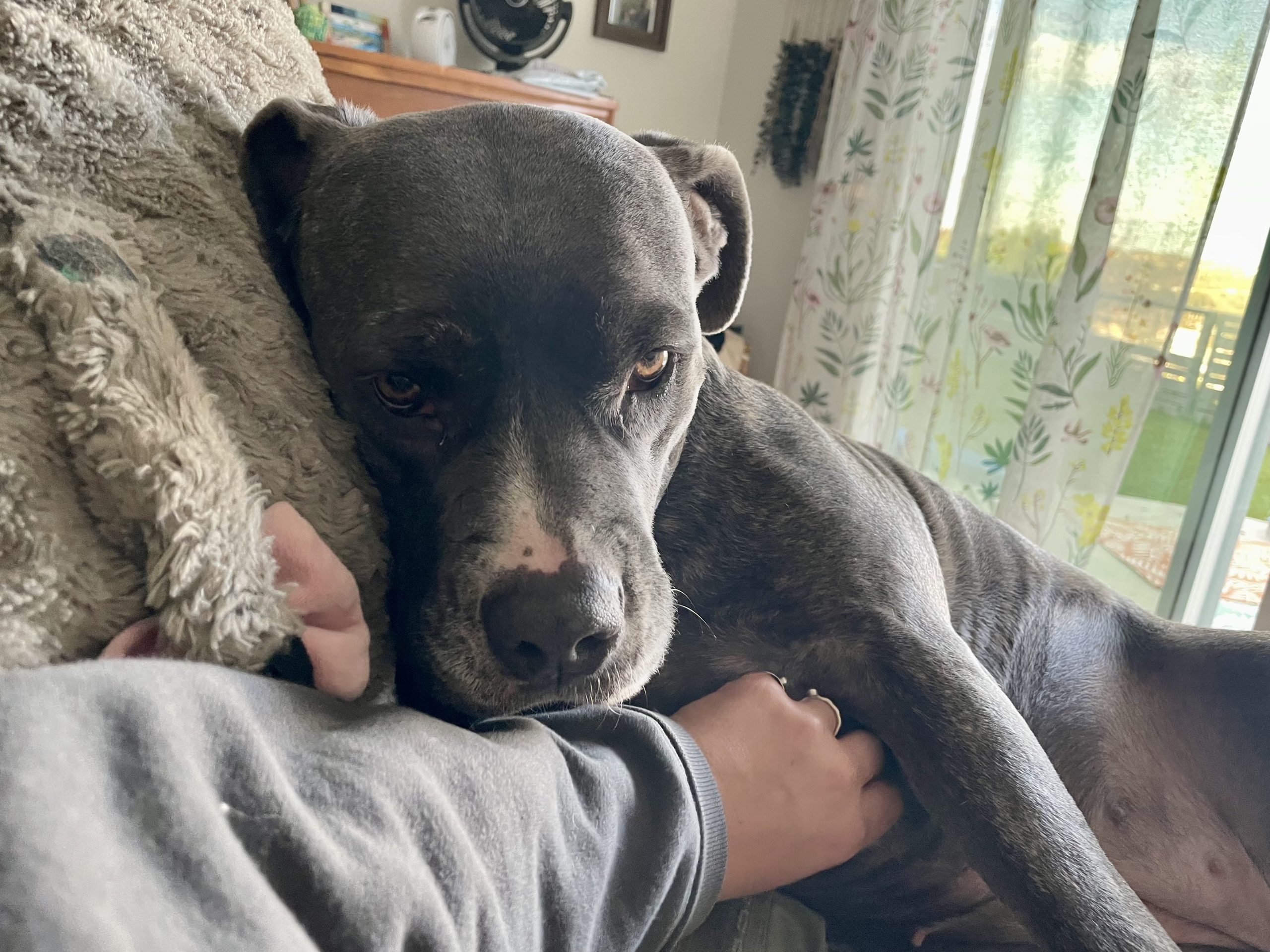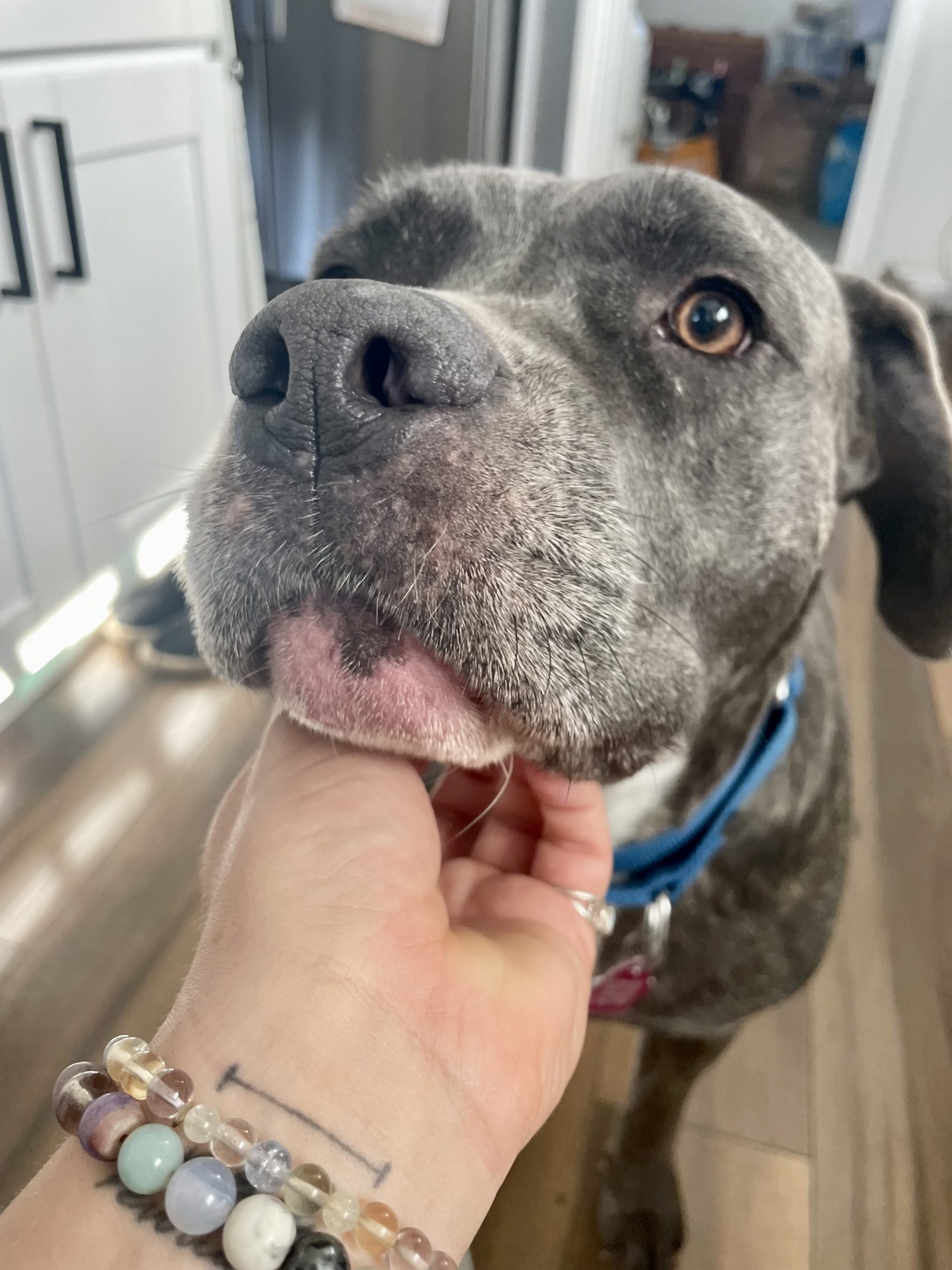 At 4 years old and 63 pounds, Lilly is the perfect medium sized, low energy companion. Chill and calm is her vibe. She’s the kind of girl who enjoys the simple things. A peaceful stroll around the neighborhood, a sunny spot in the yard to sunbathe (she’s a big fan of meditating and listening to the birds), car rides, and most of all cuddling up close to her people. She has good doggy manners; gets along wonderfully with her two foster brothers, is potty trained, and while she doesn’t mind her crate, she’s trustworthy enough to not need it.