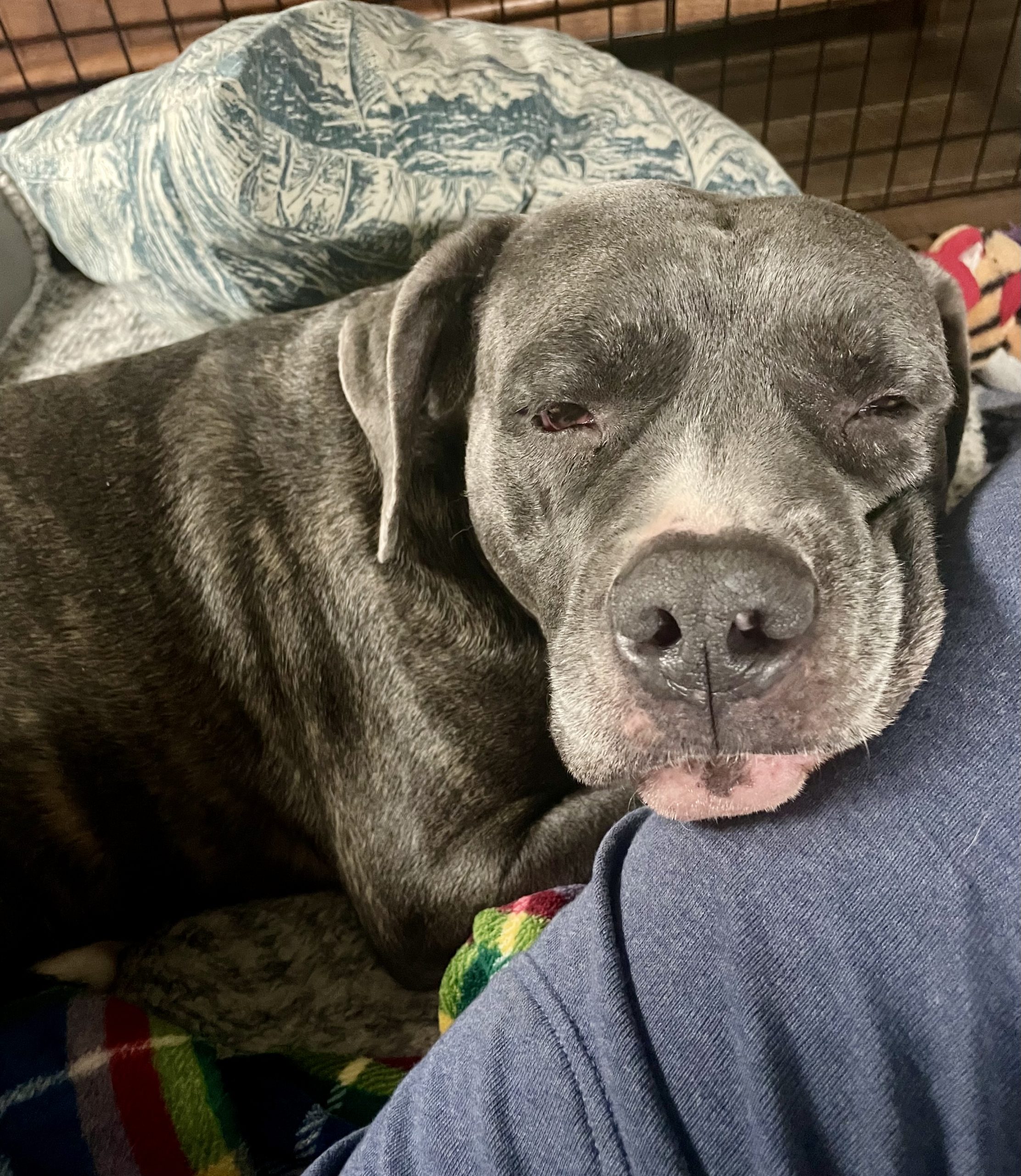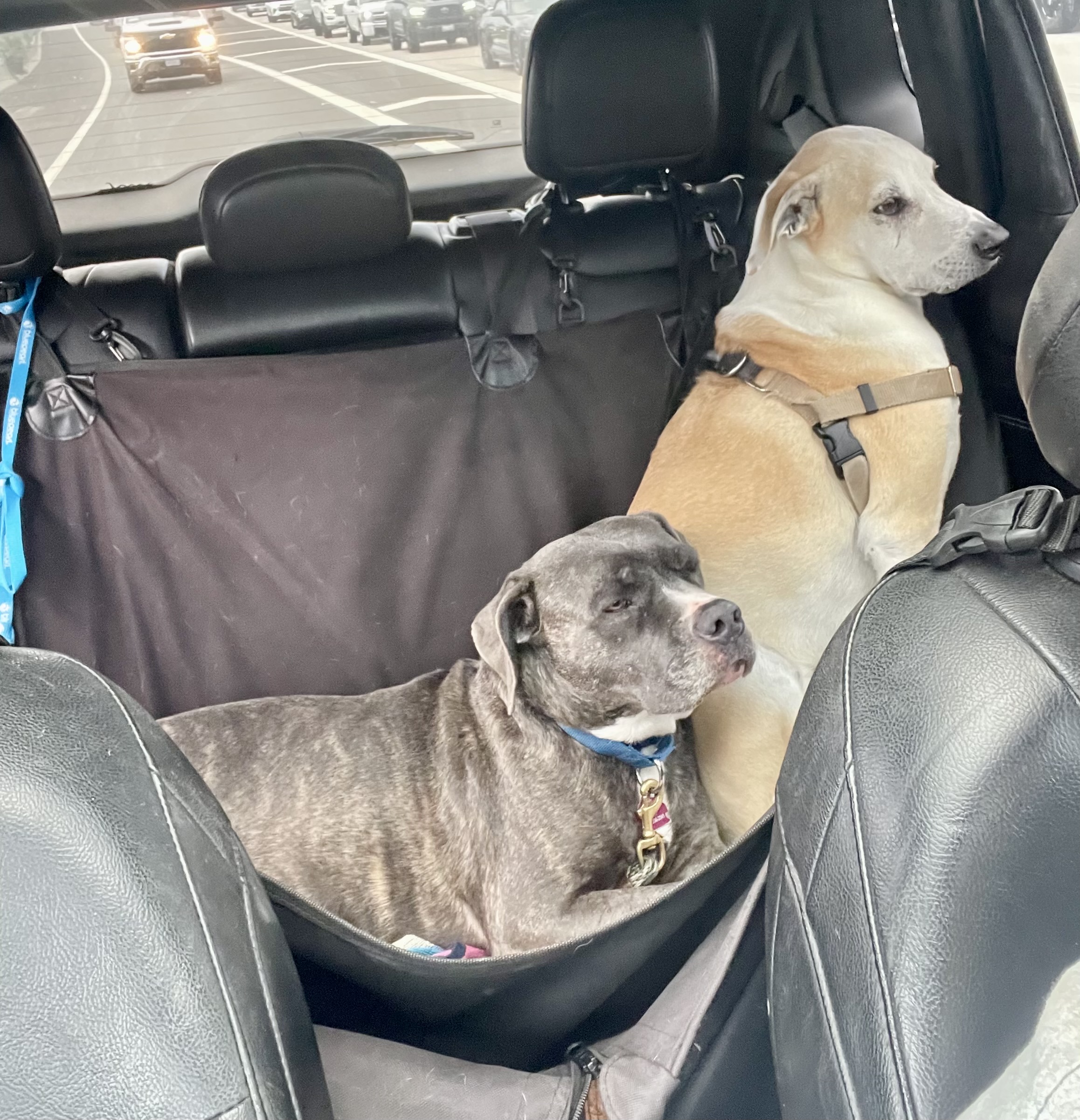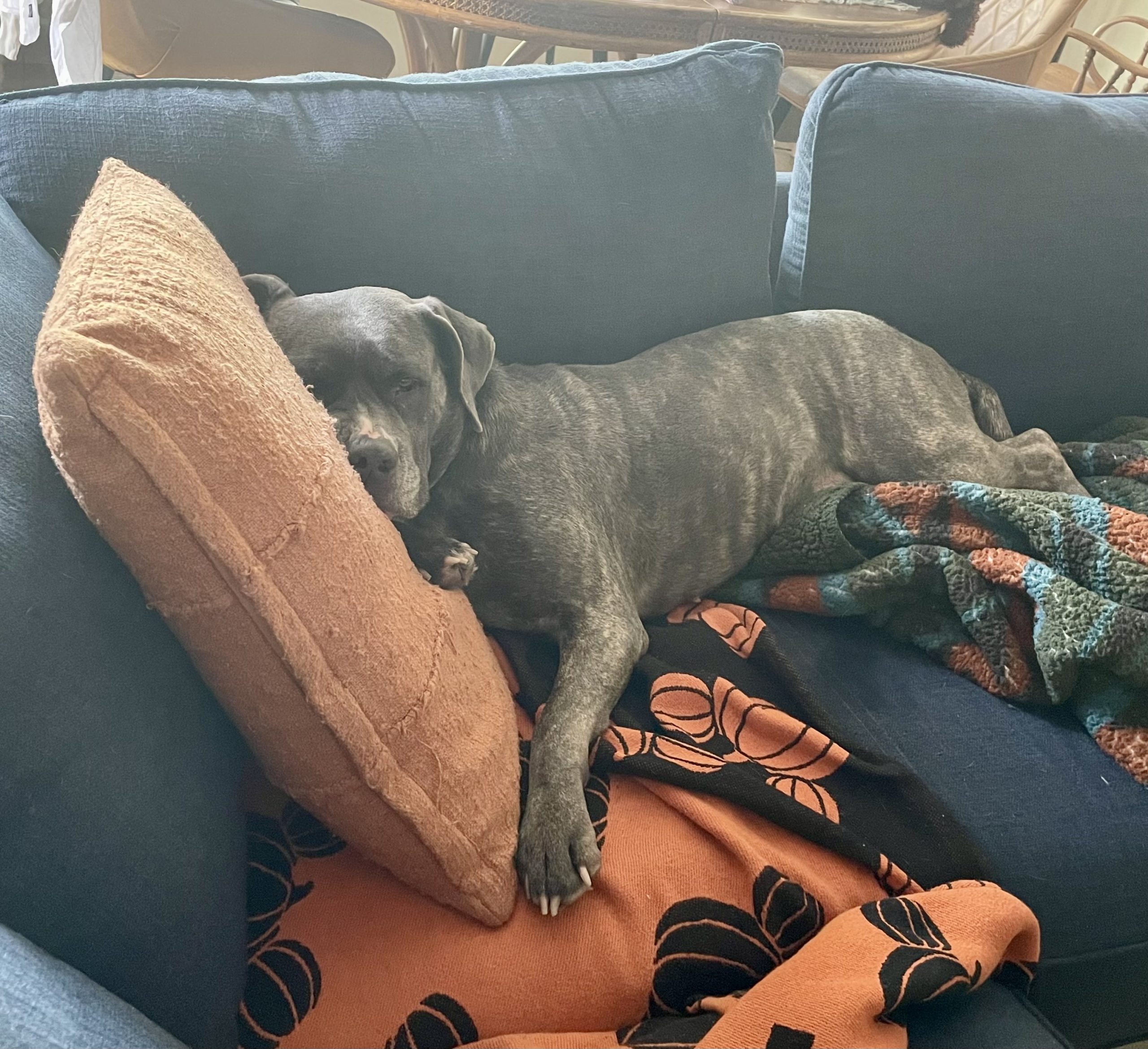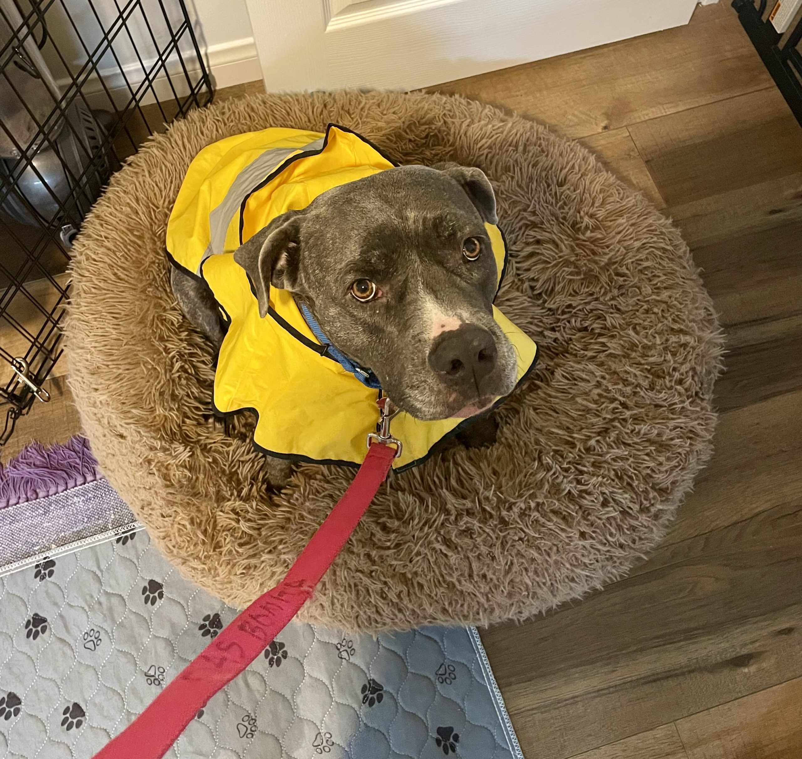 At 4 years old and 63 pounds, Lilly is the perfect medium sized, low energy companion. Chill and calm is her vibe. She’s the kind of girl who enjoys the simple things. A peaceful stroll around the neighborhood, a sunny spot in the yard to sunbathe (she’s a big fan of meditating and listening to the birds), car rides, and most of all cuddling up close to her people. She has good doggy manners; gets along wonderfully with her two foster brothers, is potty trained, and while she doesn’t mind her crate, she’s trustworthy enough to not need it.